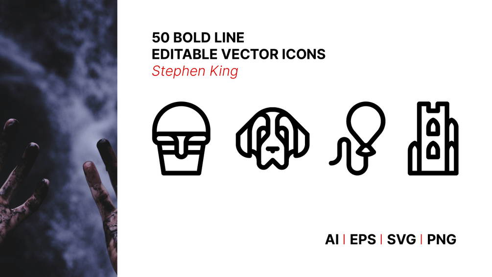 This is a collection of 50 icons inspired by the novels and short stories of Stephen King. Simple and bold.