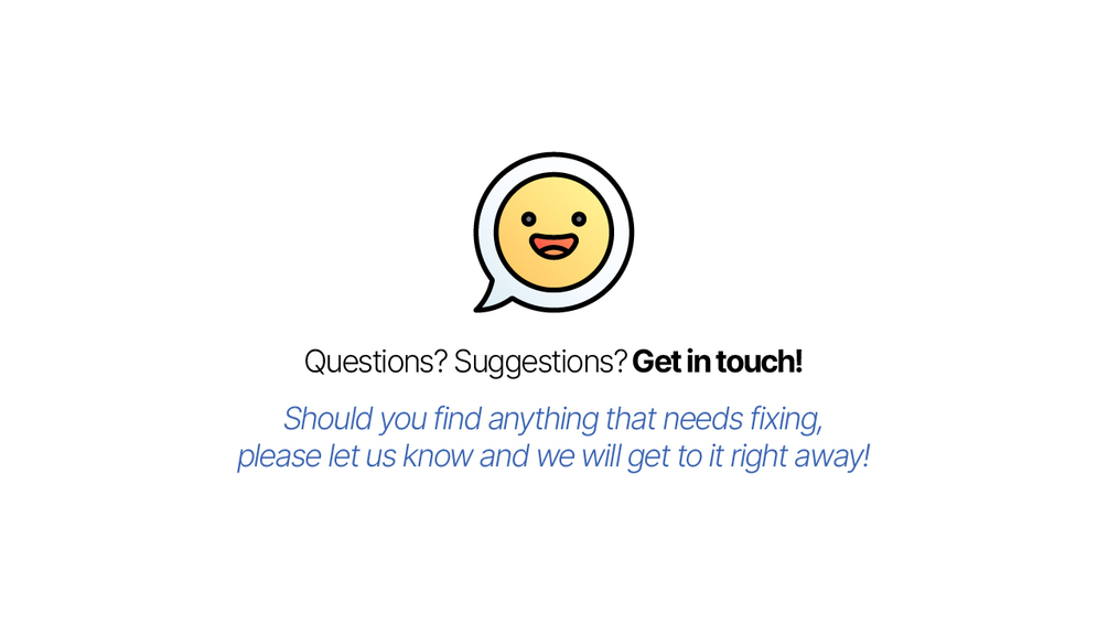 Questions, suggestions? Get in touch!