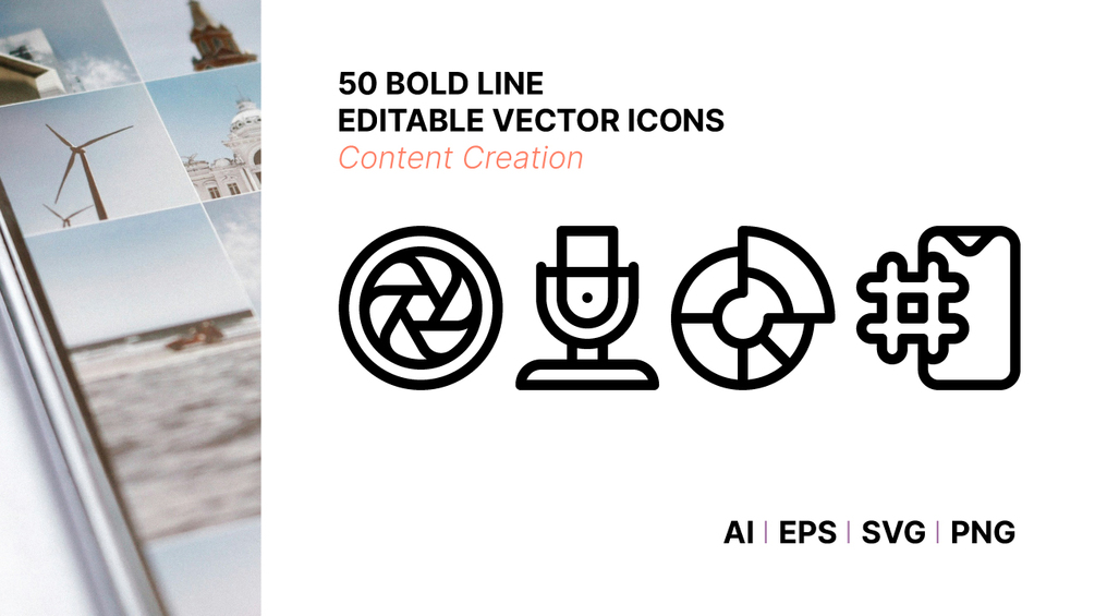 The concepts included in this icon library are: photo camera, compact camera, vlog camera, camcorder, pocket camcorder, action camera, smartphone camera, drone, lens, shutter, filter, light ring, lighting, light reflector, selfie stick, tripod, microphone, lavalier microphone, voice recorder, audio interface, headphones, film, streaming, video game, photos, slide show, graphic tablet, infographics, webinar, tutorial, comic book, book, magazine, news, white paper, case study, archive, post, hashtag, newsletter, ads, thumbs up, comment, followers, subscribe button, engagement, plagiarism, copyright, micro SD card, and external hard drive.