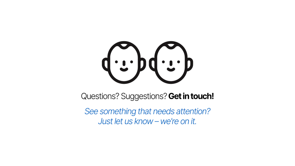 Questions, suggestions? Get in touch!