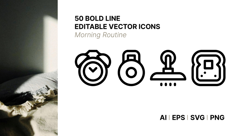 You'll get a collection of 50 morning routine icons.