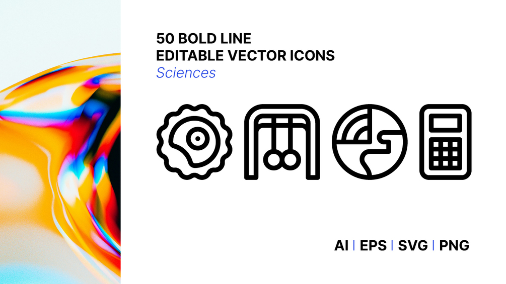 This is a collection of 50 sciences icons. Simple and bold.