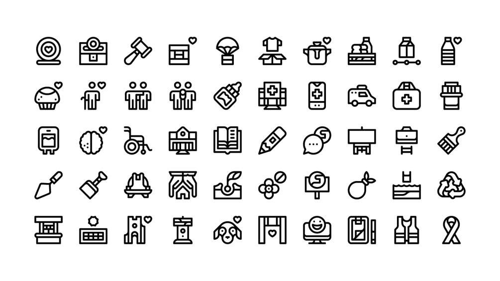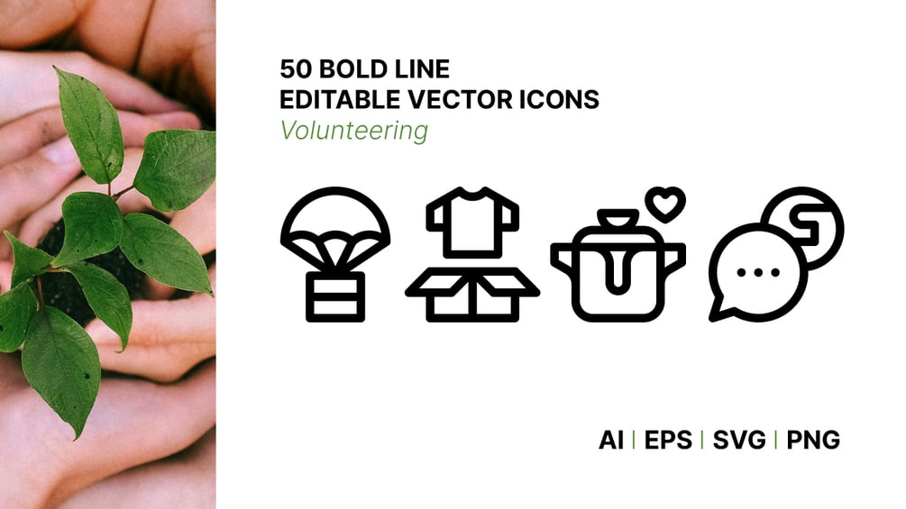 You'll get a collection of 50 volunteering icons.